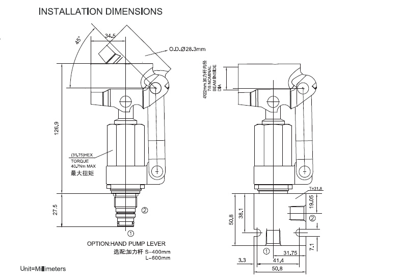 Hydraulic Pump Cartridge HP-08 INSTALLATION DIMENSIONS