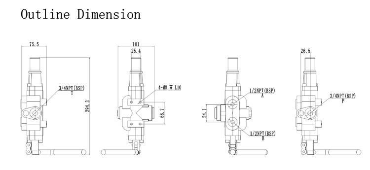 LSV 4-way directional control log splitter hydraulic valve is designed primarily for log splitters. The manual adjustable handle provides fine metering to either port. Port flow is directly proportional to the movement of the lever. The tank port must be plumbed directly back to tank.