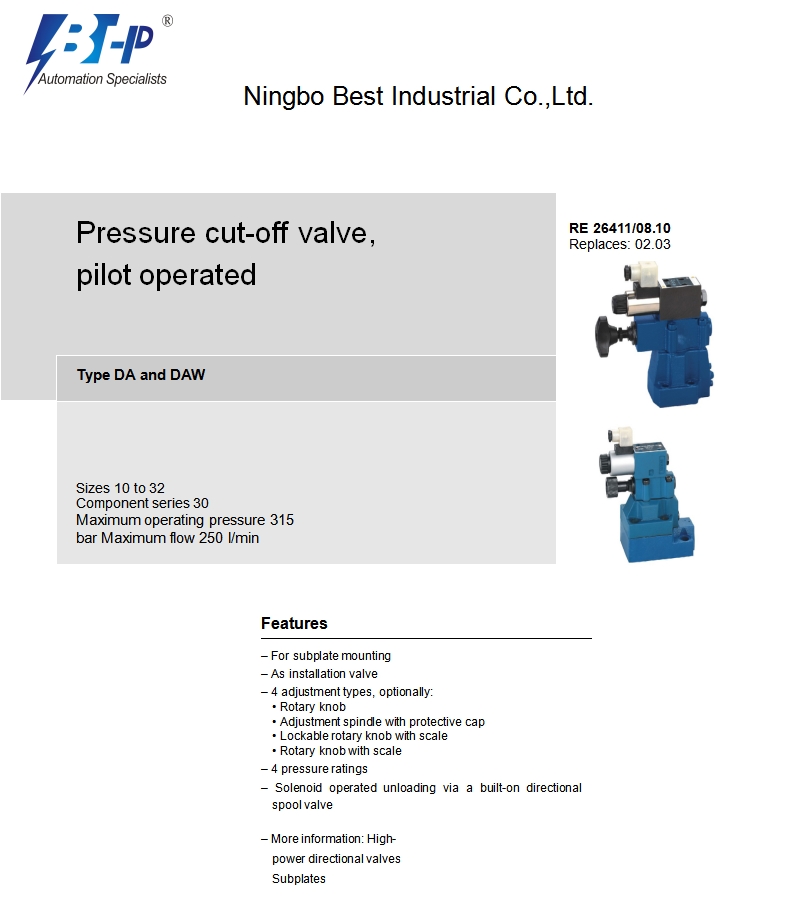 DA DAW-30 Pressure Cut-off Valve,Pilot Operated